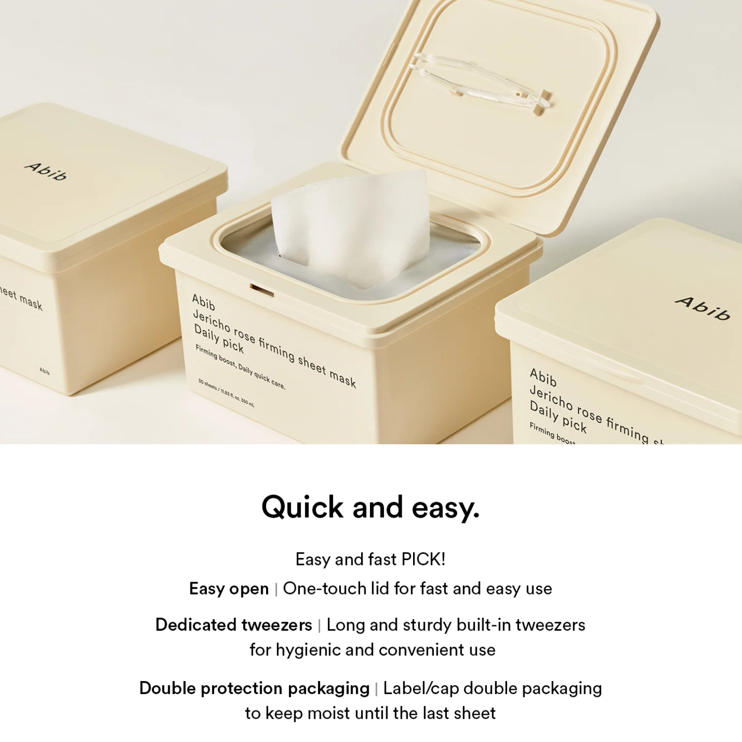 • ABIB Jericho Rose Firming Sheet Mask Daily Pick is a daily treatment mask designed to deeply hydrate while helping improve skin elasticity and firmness. Enriched with Jericho Rose (Anastatica Hierochuntica) Extract and Trehalose, it helps revitalize and care for tired-looking skin. A blend of Hyaluronic Acid, peptides, and Adenosine delivers lasting moisture to keep skin smooth, plump, and refreshed. The 0.3mm ultra-slim vegan sheet adheres comfortably to help absorb the nourishing essence, providing gentle care with minimal irritation. Ideal for daily use when your skin needs hydration and a boost of resilience.
